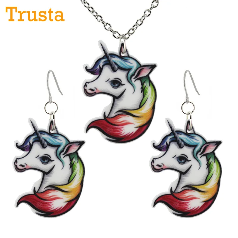 Trusta/2018 модные Подарочные ювелирные изделия для девочек, маленькая серьга с единорогом, ожерелье с короткой цепочкой 16 ", бесплатная доставка, подарок Xma KS03
