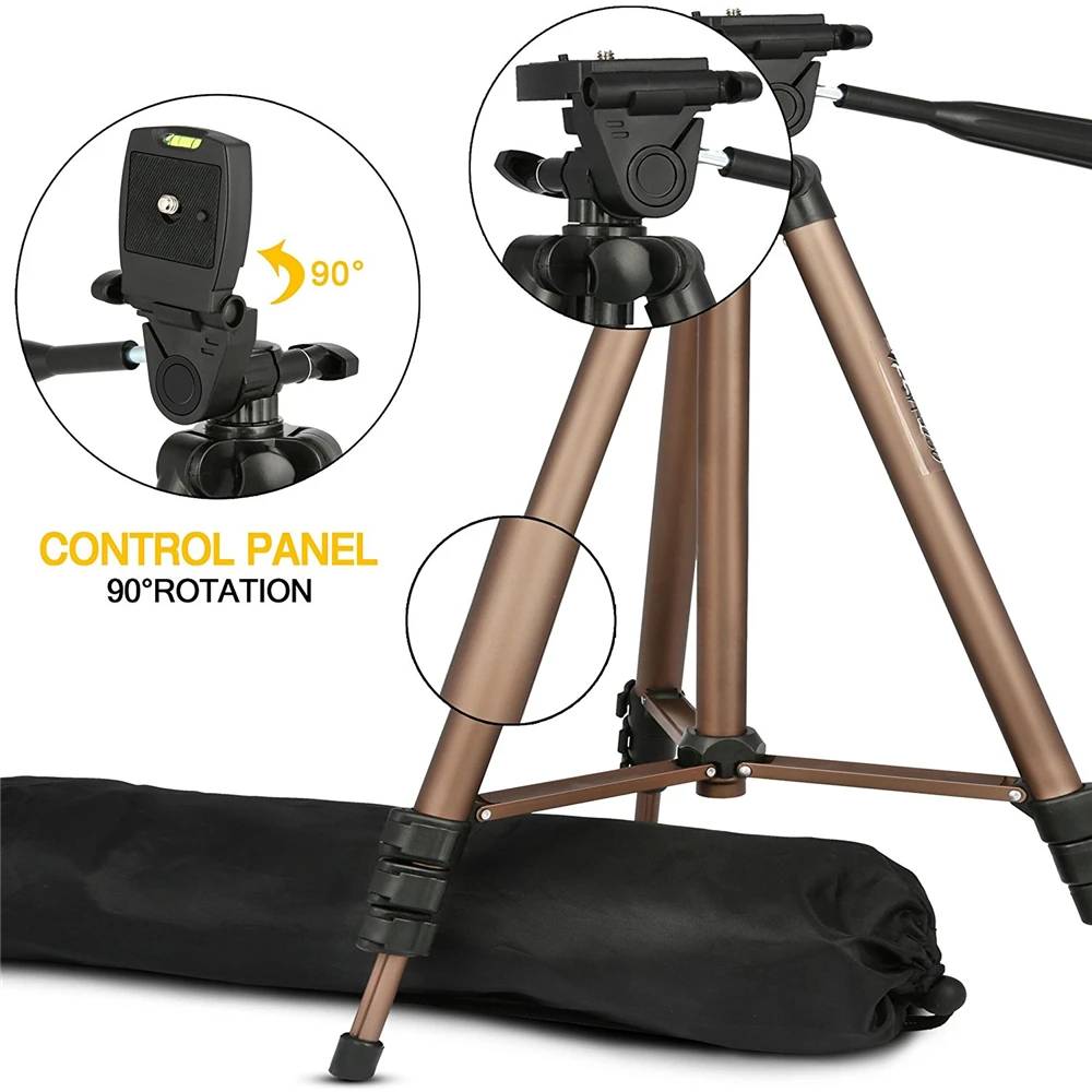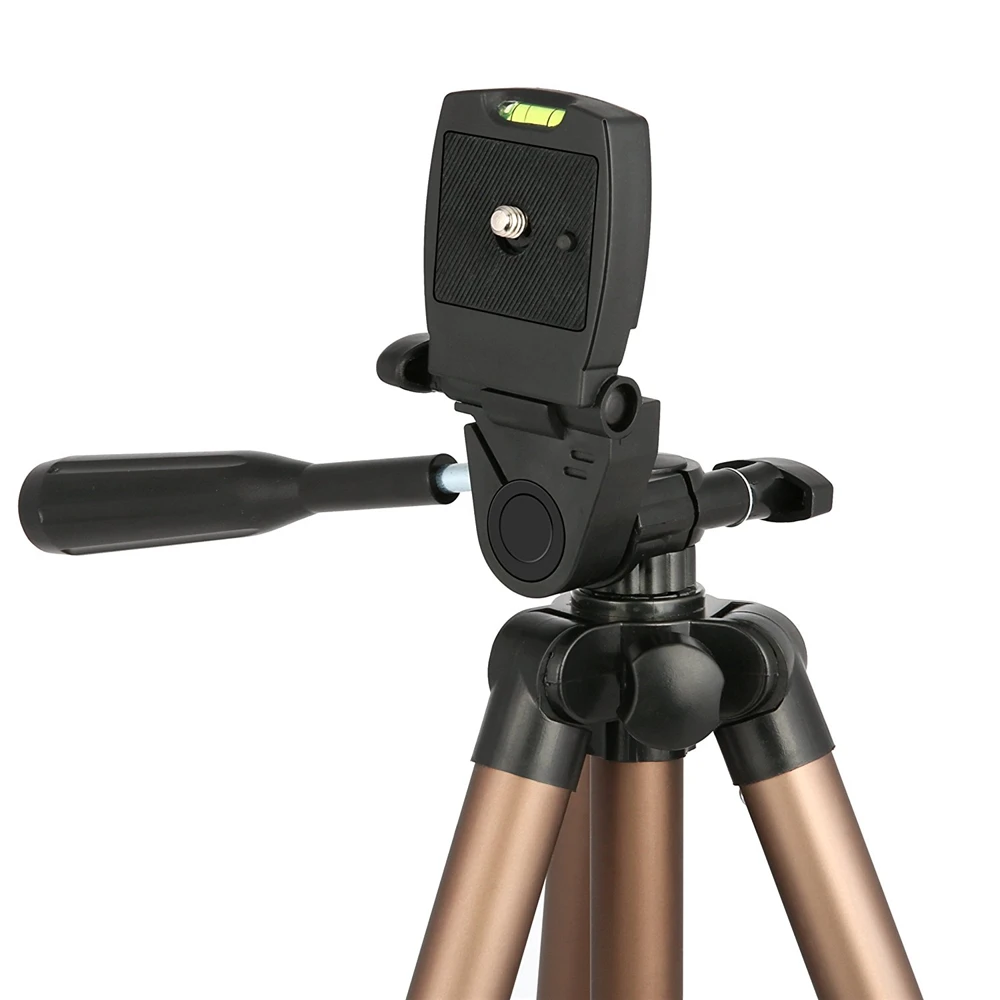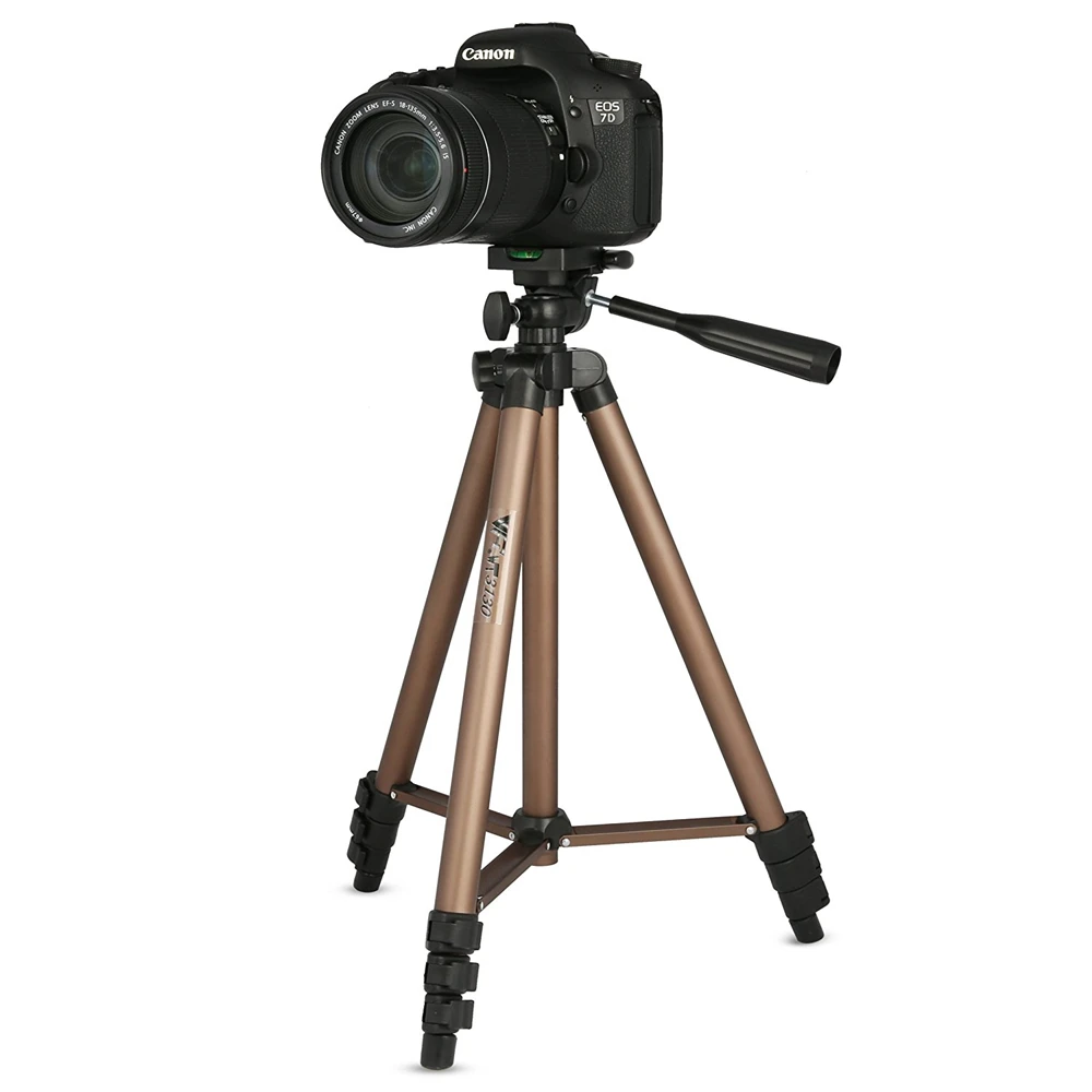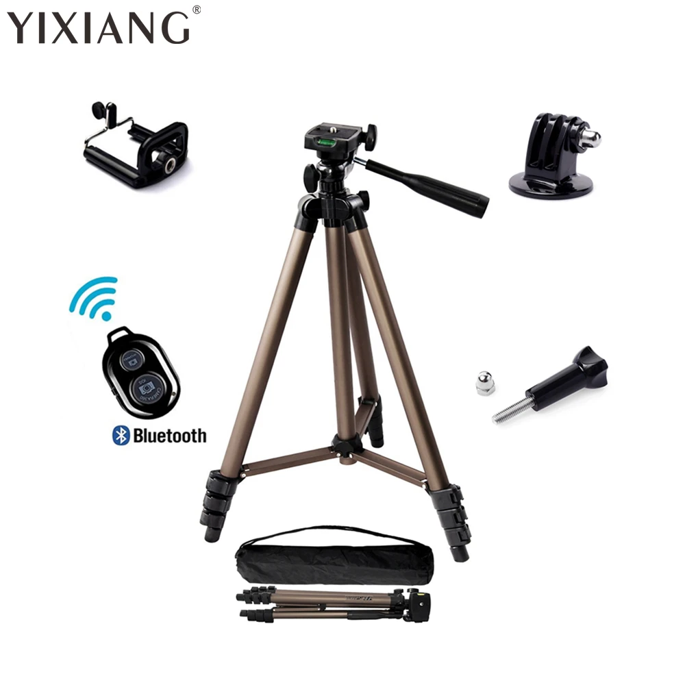 5 в 1 WT3130 штатив для камеры из алюминиевого сплава с коромыслом для Canon Nikon Sony gopro iphone Samsung xiaomi huawei Android Особенности: Изготовлен из алюминиевой трубки высокой плотности, прочный и стабильный. Встроенный уровень духа, три регулировочных ручки дизайн демпфирующий эффект шаровой головки, реализуя любой угол съемки, точный и эффективный. БЫСТРОРАЗЪЕМНАЯ пластина для легкого подключения к камере или видеокамере. Фиксатор регулировки угла ноги обеспечивает одиночную регулировку каждой ноги. 4-секционная ножка колонны с быстросъемными фиксаторами, что обеспечивает более удобную обработку ног, удовлетворяя желаемый рост при съемке. Оснащенный стальным рокером, вы можете отрегулировать шаровую головку во время съемки. Создайте кнопку для подъема оси, более удобную в использовании. Нескользящие резиновые ножки. Портативный карман позволяет легко носить с собой. Лучший выбор для SLR камеры в вашем путешествии. Характеристики: Модель: WT3130 Материал: алюминиевый сплав Длина в сложенном виде: 42 см Максимальная высота штатива: 125 см Количество столбцов: 4 секции Грузоподъемность: 2,5 кг/5.5Lb Вес изделия: 522 г/1,15 фунтов Размер упаковки: 9*9*43 см/3,5*3,5*16,9 дюймов Вес упаковки: 640 г/1.41Lb Комплектация: 1 * Штатив 1 * сумка для переноски 1 * длинный винт большого пальца 1 * Адаптер для крепления штатива 1 * зажим для мобильного телефона 1 * Bluetooth затвор (Примечание: только для Android и IOS) Примечание: пульт дистанционного управления не включает батарею