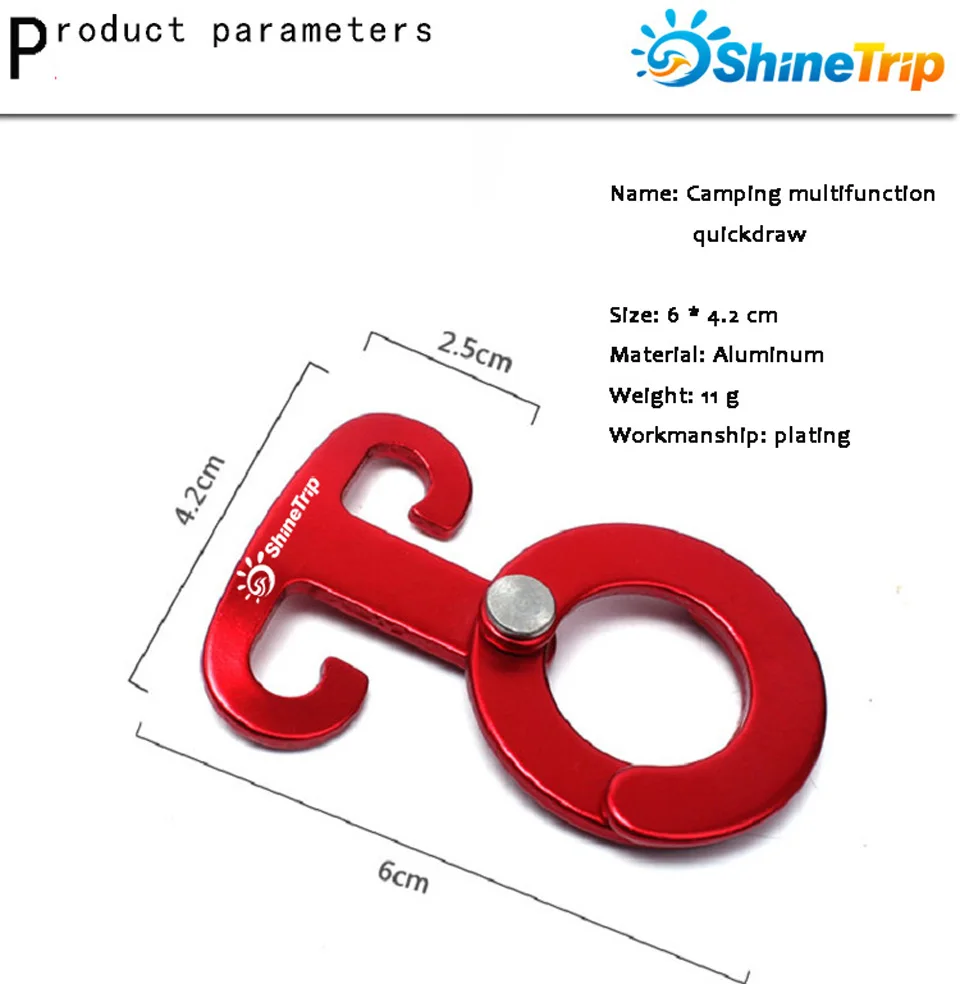 Эта многофункциональная Пряжка quickdraw очень удобна в использовании. Сверхлегкий материал из алюминиевого сплава, легко носить с собой. Материал: Алюминий Размер: прибл. 6x4.2x2.5cm Цвет: красный Вес: прибл. 11 г/шт. Посылка в комплект входит: 2 x палатка пряжки для веревки