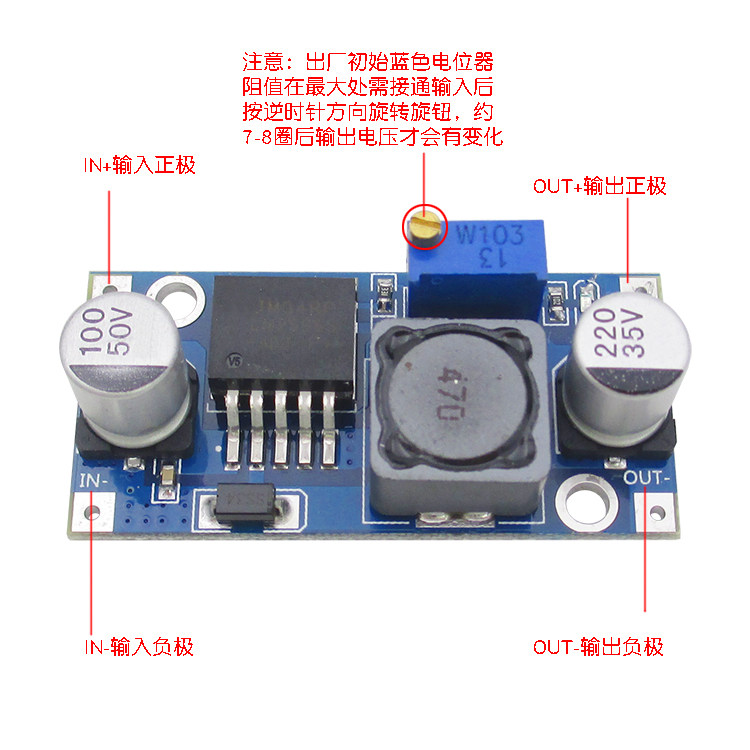 Обратите внимание, что вход и выход не могут быть подключены. Тогда оппозиция может сгореть! Вход: DC 3V постоянного тока до 40V (Вход напряжение должно быть больше, чем в выходное напряжение выше 1,5 V). Не может увеличить) Выход AC/DC 1,5 V постоянного тока до 35V напряжения с плавной регулировкой, и он имеет высокую эффективность Максимальная Выход ток 3A. Характеристики: Все используемые твердотельные конденсаторы SANYO, толстая печатная плата 36U, высокая индуктивность Q с выходным светодиодный индикатором Размер: 45 (Д) * 20 (Ш) * 14 (высота) мм (включая потенциометр) Примечание: в течение длительного времени рекомендуется использовать ток в пределах 2,5 А с теплоотводом (10 Вт или выше); Потому что это понижающий модуль, для того, чтобы обеспечить стабильность выходного сигнала, держать минимальное 1,5 V разности давлений. Регулирование напряжения Доступ к блоку питания (3-40 в), отрегулируйте синюю ручку потенциометра (вращение по часовой стрелке, вращение против часовой стрелки) и Используйте мультиметр для контроля выходного напряжения для достижения необходимого напряжения Режим подключения 1 сварка, направьте шнур питания на входной (выходной) порт; 2 сварочных штифта могут быть вставлены в отверстие пластины через свинцовый провод, или могут быть непосредственно сварены на PCB после добавления штифта. Пример применения 1 источник питания транспортного средства, входной модуль должен быть подключен только к источнику питания автомобильного прикуривателя, вы можете отрегулировать потенциометр, выходное напряжение может быть изменено в любой 1,25-30 в, на ваш мобильный телефон, MP3, MP4, PSP и многие другие зарядные устройства источника питания, Очень простой и удобный. 2 к электропитанию электронного оборудования, когда оборудованию требуется 3-35 в источник питания и соответствующий источник питания напряжения, модуль может быть использован для облегчения напряжения до желаемого напряжения, чтобы решить проблему. 3 тест на напряжение системы, проект может использовать этот модуль для отладки различных систем тестирования напряжения, диапазон рабочего напряжения, очень легкий и удобный.