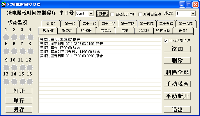 RS485 модуль управления реле, может использовать компьютер через USB до 485 контроллер подключения интерфейса для управления оборудованием, выход переключателя интерфейса, обычная точка открытия, может быть установлен с помощью программного обеспечения управления временем, может установить несколько точек отдельно, несколько точек закрыть, Ежедневно или в соответствии с неделей, может зафиксировать дату, а также может зафиксировать дату и время, как и интеллектуальный мобильный телефон, программное обеспечение для работы с будильником можно установить имя каждой дороги, Время для пользователей для редактирования информации в виде обработки документов, удобное для пользователей. Примечание: регулярное использование этого продукта, информация о времени, хранящаяся в компьютере, отправляется компьютером во время соответствующего командного переключателя, управляющего переключателя, необходимо всегда поддерживать связь и компьютер. Это онлайн-версия