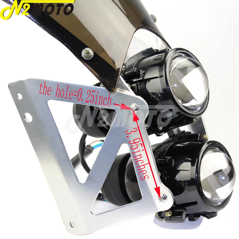 Двухслойные прожекторы и черные кронштейны с ветровым стеклом.