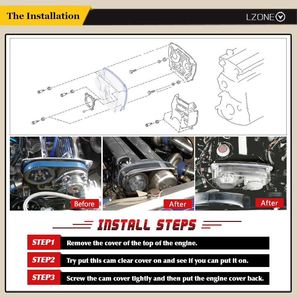 Прозрачная крышка камеры почти точно дублирует заводскую часть.Он изготовлен из поликарбоната-чрезвычайно прочного термопластика.Гарантирует, что он будет соответствовать каждому после рынка cam gear set.Последний тренд в изменении автомобиляВысокая термостойкость и устойчивость к коррозииМожно проверить, повреждены ли ремни ГРММожет обнаруживать любые сломанные ремни из-за утечки маслаУлучшение видимости двигателяУменьшение сложности ремонта двигателяЛучший опыт жизнестойкости двигателяРекомендуется для использования регулируемого кулачкового шкива Размеры и материал:
