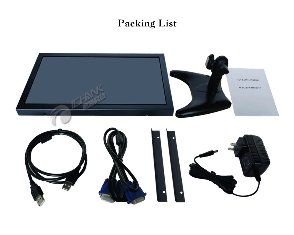 Монитор * 1/адаптер питания * 1/основание * 1/Кронштейн с открытой рамой * 2/USB кабель * 1/VGA кабель * 1/(Емкостный сенсорный экран без привода, поэтому диск не предоставляется)/общее руководство (только для справки, доступно для нескольких моделей, поэтому его содержимое может не совпадать с моделью, которую вы покупаете сейчас);