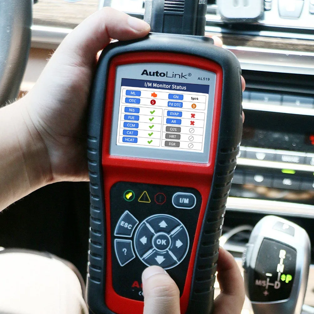 4. Autel AutoLink AL519 с уникальным запатентованным одним нажатием кнопки I/M готовности, TFT цветной дисплей и встроенный динамик, это лучший партнер для ремонта вашего автомобиля.
