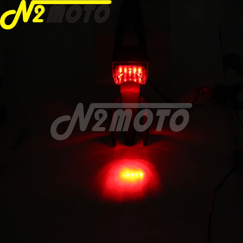 Этот легкий универсальный светодиодный задний фонарь крепится под задним крылом практически каждого внедорожного мотоцикла. Небольшой номерной знак держатель для внедорожных велосипедов с светодиодный светильник тормоза.