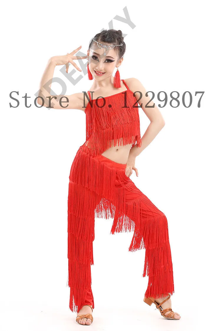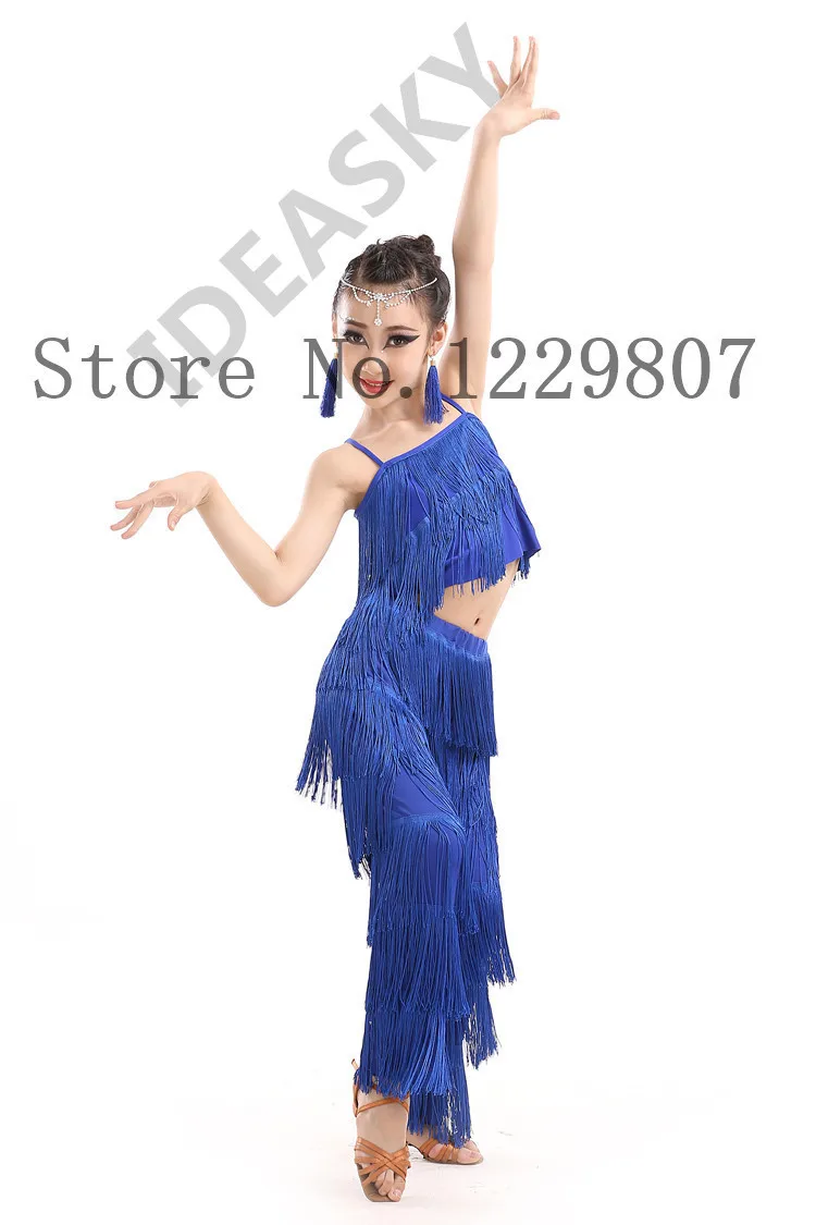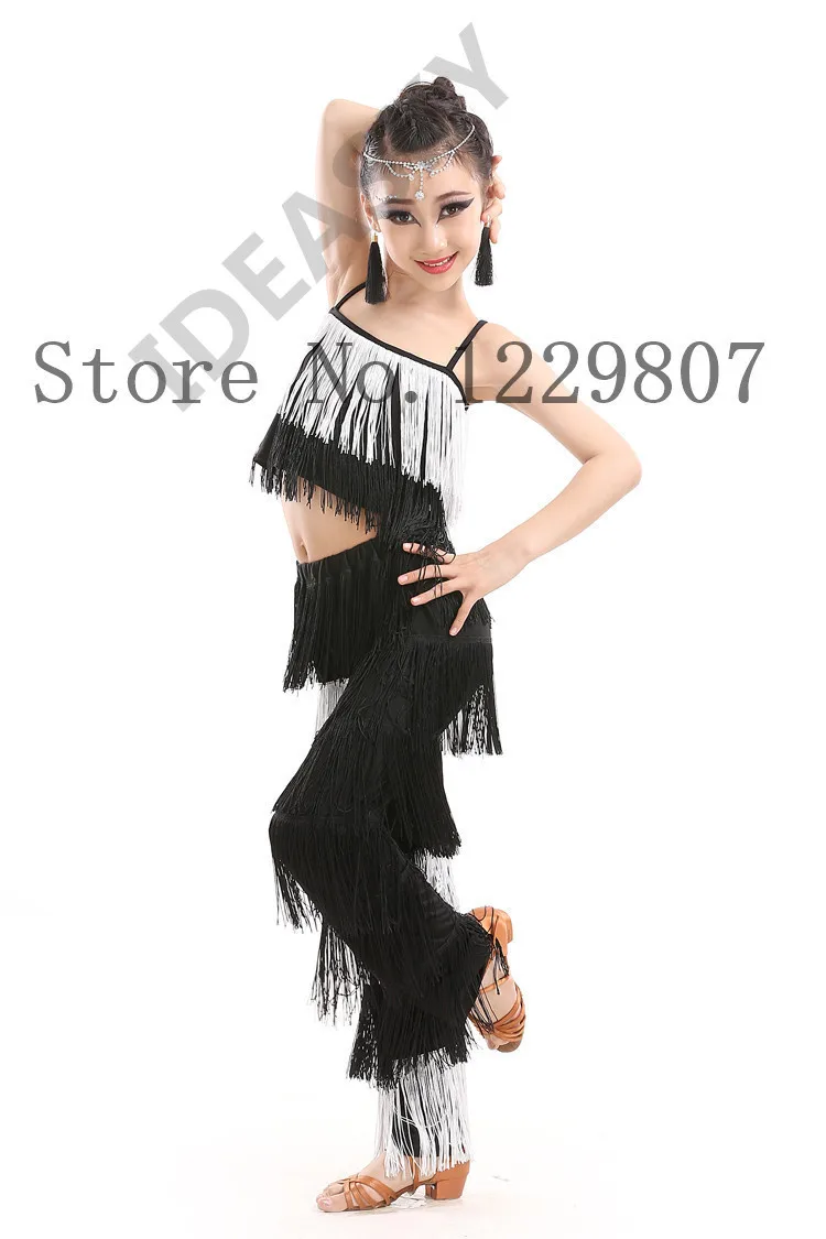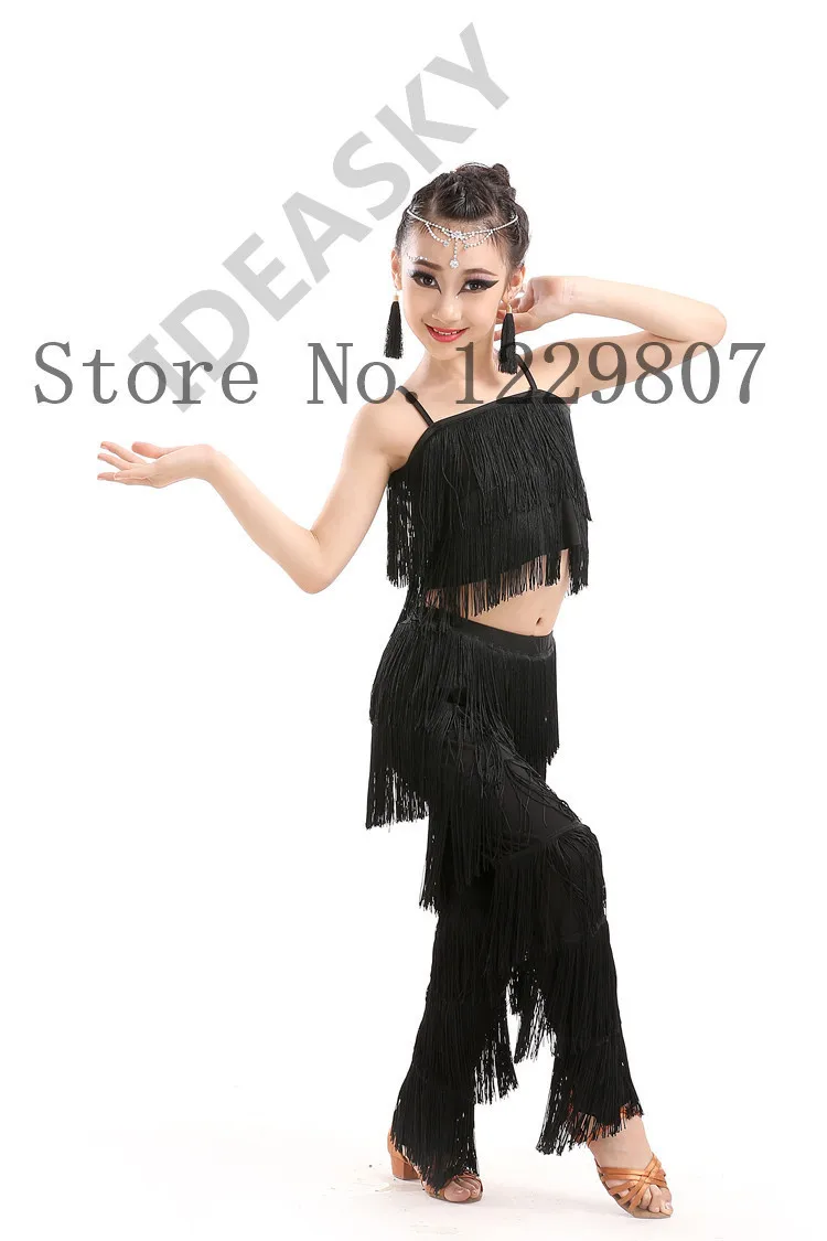 Платья для латинских танцев, распродажа, бальные платья размера плюс с бахромой, штаны, костюм сальсы с бахромой и пайетками для девочек