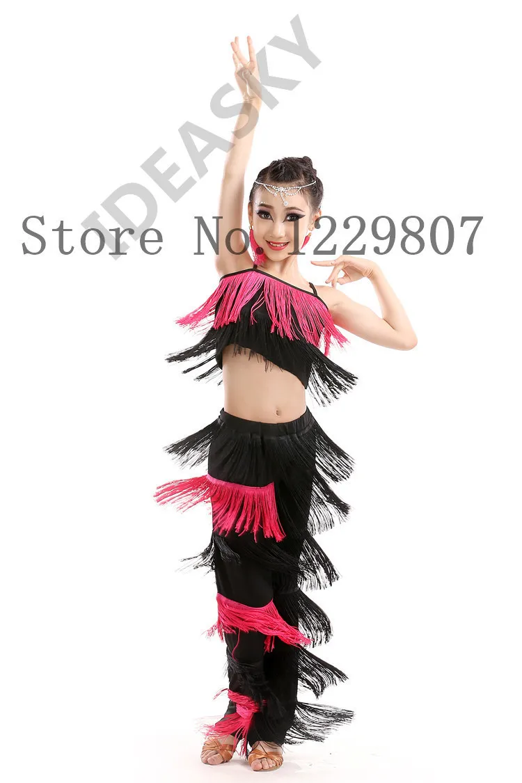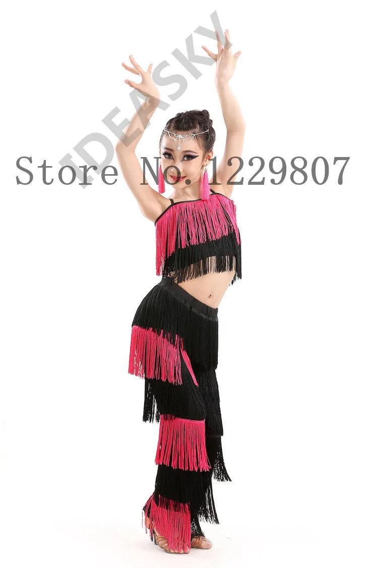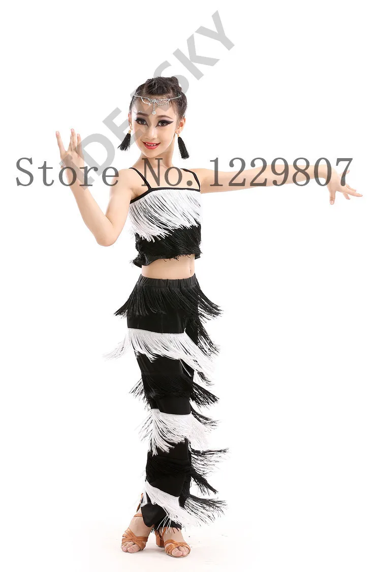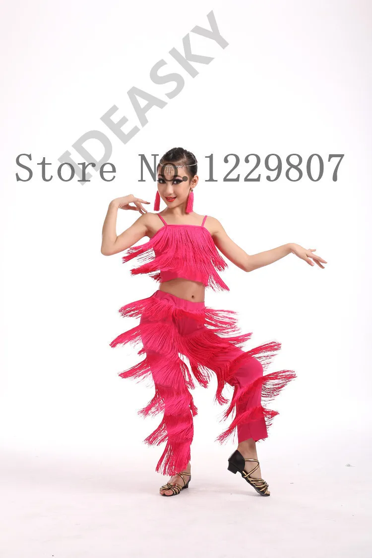 Платья для латинских танцев, распродажа, бальные платья размера плюс с бахромой, штаны, костюм сальсы с бахромой и пайетками для девочек