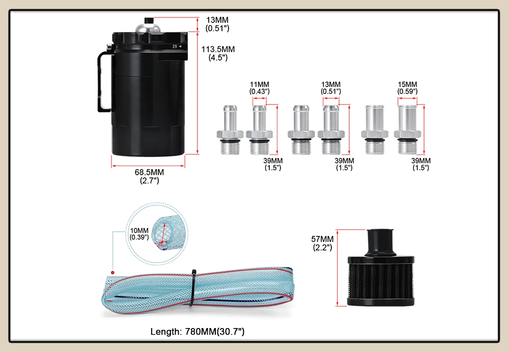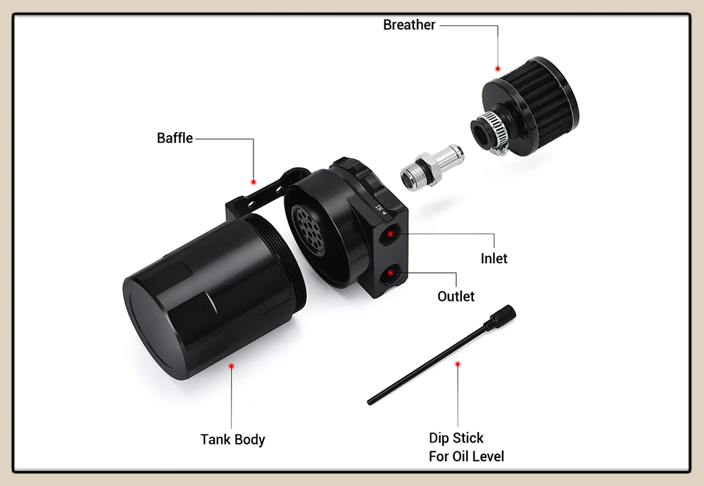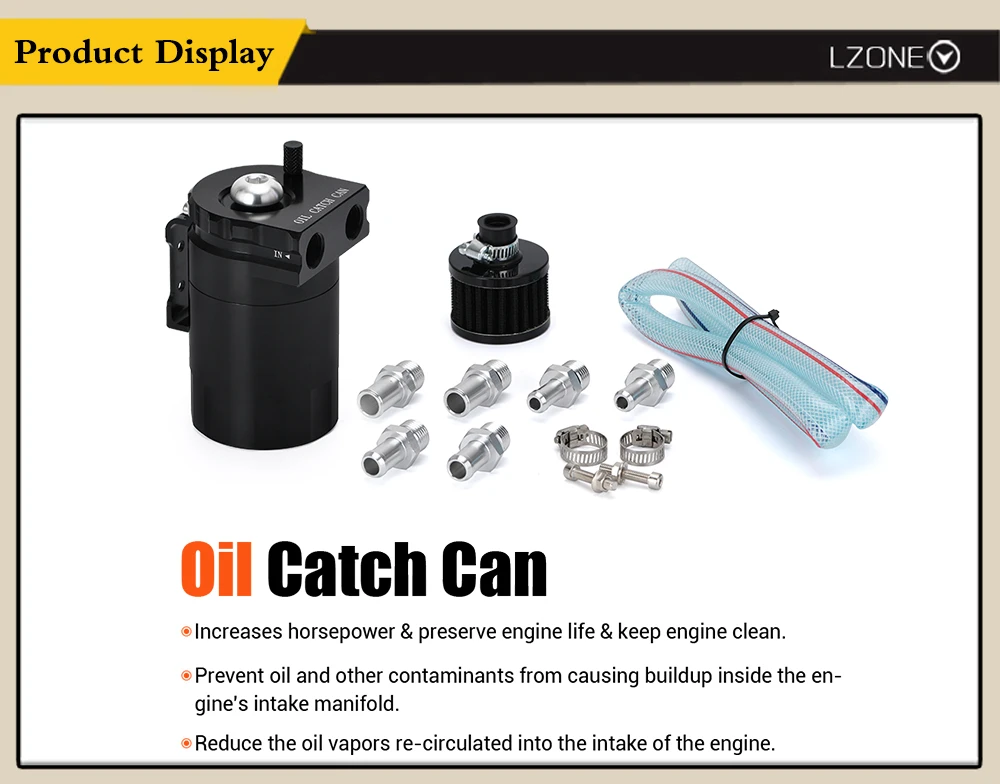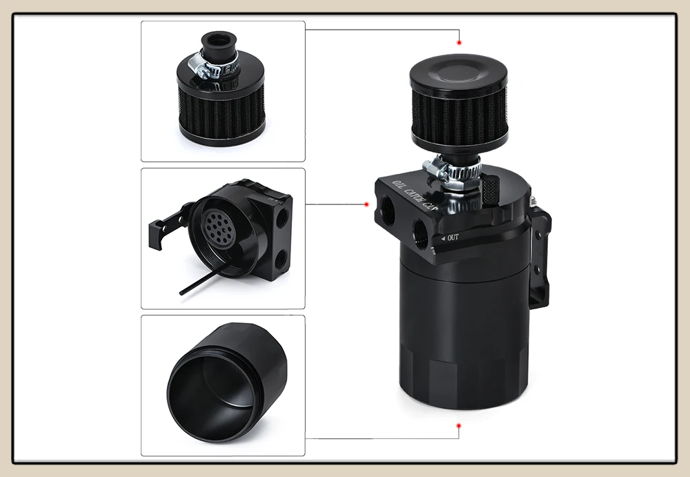 Ver.2闭环系统和呼吸系统。 内部挡板双室过滤捕获。 油挡能赶上不密封气体的油和水分导致碳和污泥堆积在进气系统和引擎。 你所有石油蒸汽驱逐了增压发动机才能伤害你的汽车发动机性能保持干净即使在艰难的驾驶环境。 抓住可以阻挡灰尘和油会在发动机进气系统。 增加马力,延长你的引擎的生活包括软管,夹和安装支架100%质量保证测试,响应更快,更便宜,更容易安装。维材料: