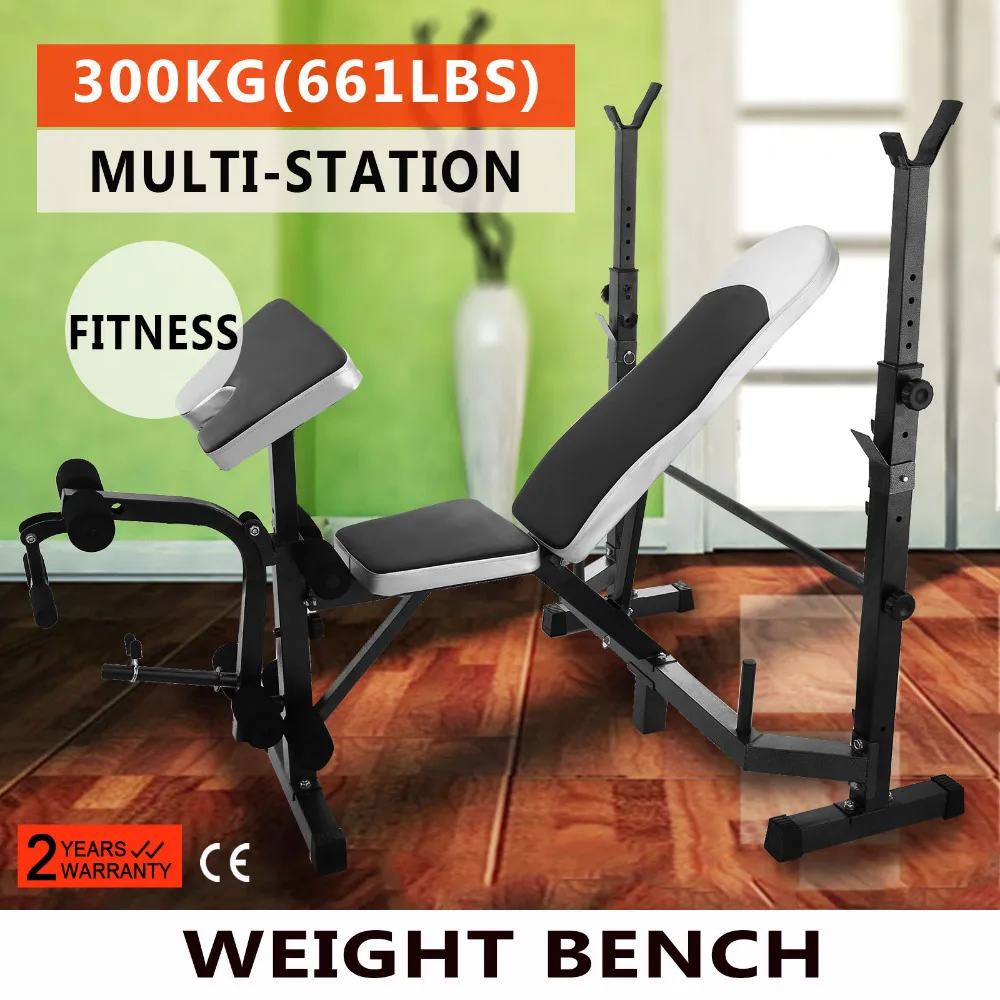 Вы можете сделать скамейку пресса, приседания, dip, preacher curl и накладные подъемы для ваших мышц с несколькими видами оборудования, поставляемых этой регулируемой скамейкой для поднятия веса.
