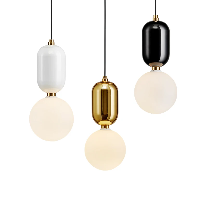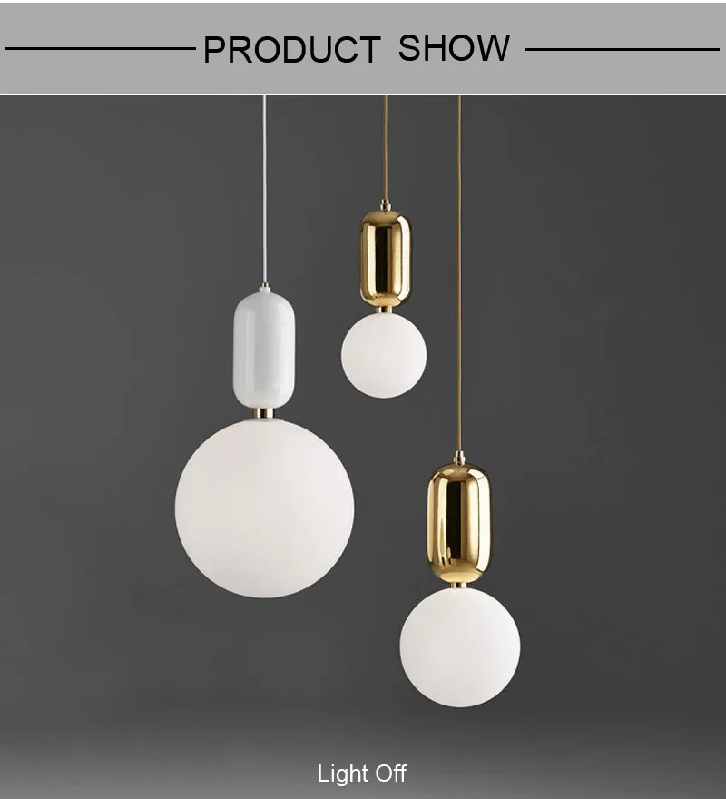 Современный простой подвесной светильник s с высокой репликой стеклянный абажур простой белый черный золотой цвет E27 6 Вт Светодиодная лампа подвесной светильник Минимализм Nordic подвесной светильник Светильник: металлический корпус с черным/белым/золотым покрытием Светильник Размеры: Dia.24cm и Dia.18cm стеклянный шар Материал: металл и стекло Светильник источник: E27 6 Вт светодиодный потолочный светильник, теплый белый свет, AC220V/110V вход Применение: Чайный домик чайный бар Домашний декор осветительный прибор для гостиной паба Посылка включает в себя: 1 шт. современный простой подвесной светильник