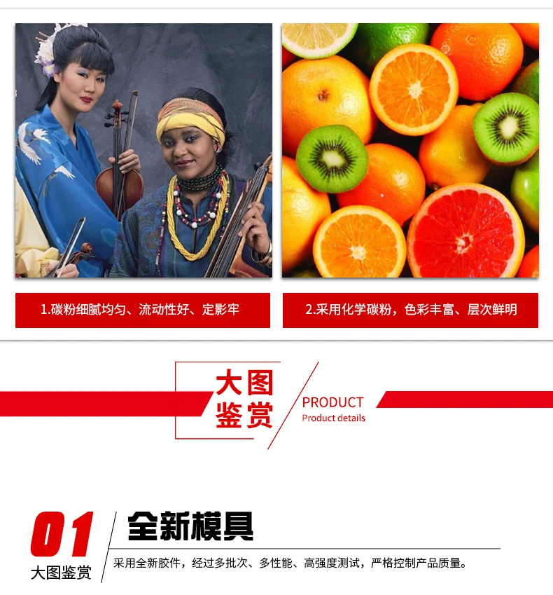 B. Наши чипы, тонер-картриджи или Тонер-порошок, яркий цвет, плавное качество печати, как и оригинальные.