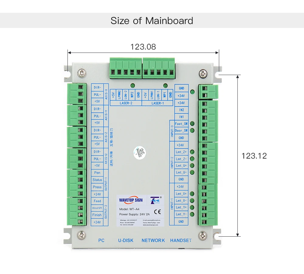 5) Поддержка 2 лазерного управления, лазерное управление выходное напряжение 0 ~ 5 В регулируется, ШИМ выход 0 ~ 100K регулируется, рабочий цикл 0 ~ 100% регулируется;