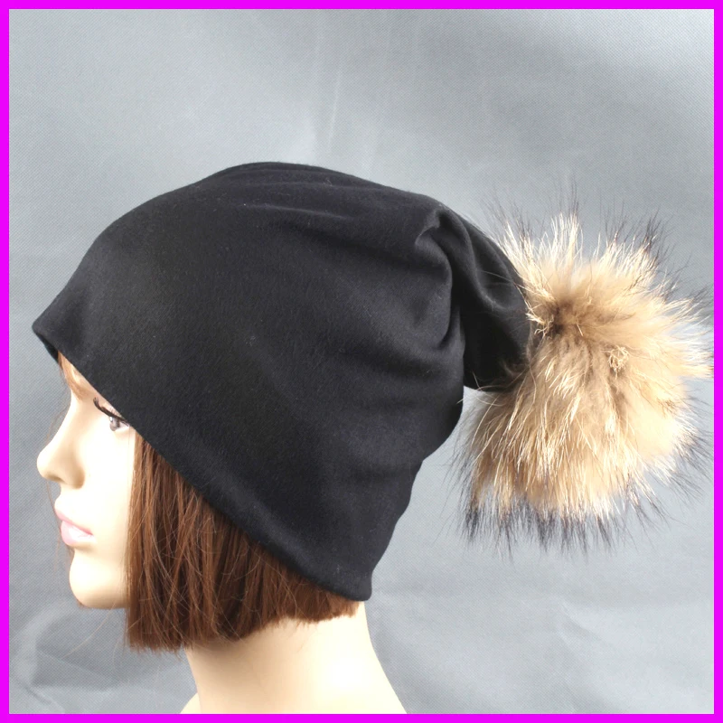 1. Помпон из натурального меха енота Размер: 15 см для диаметра. Большой помпон из натурального меха