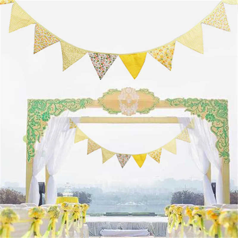 Новые Желтые тканевые флаги, баннеры для свадебного декора, баннеры для вечеринки, гирлянды для украшения баннеров, флаги 12 флагов 3,2 м