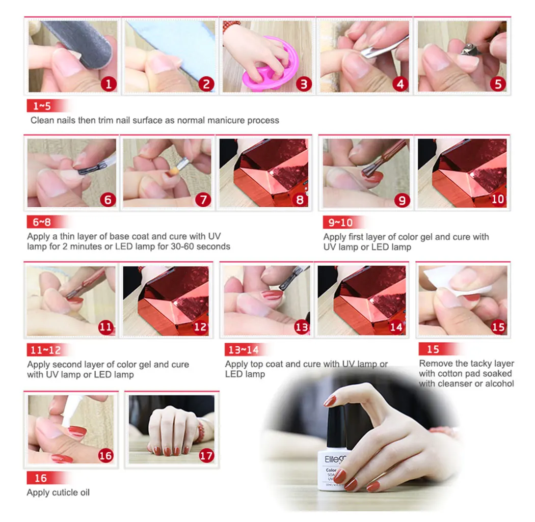 * Без шлифовки. Никаких подшивки. Нет времени сушки после применения: лечение с УФ-гелем. Конец переделки с нуля;