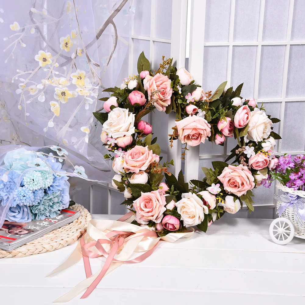 Искусственные цветы для растений имитация венков розы сердце Гирлянда Свадебные двери венок сделай сам украшение для автомобиля декоративные растения Цветок
