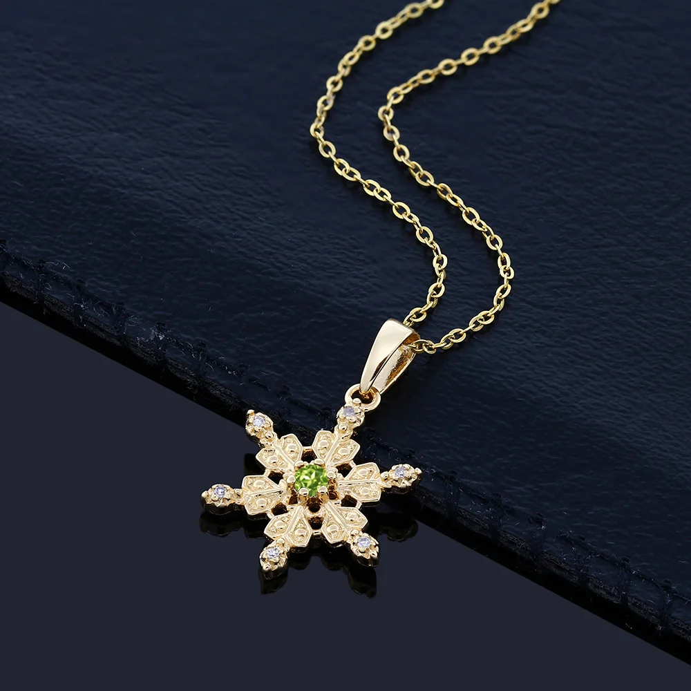 Торговая марка:Карло BiancaНазвание:18 K желтый позолоченный серебряный алмазный акцент Подвеска из снежинки Зеленый ПеридотАртикул:VIV-0049-RD-PE-GR-YPSSСтрана происхождения:Сделано в СШАВ общей сложности карат Вес:0,07 каратОсновной камень:Круглый Зеленый ПеридотБоковые камни:Один круглый надрез K-L DiamondМеталлический Тип:Цельное серебро, покрытое желтым золотом 925Gram Вес:1,30 граммРазмеры:17x17 ммТип застежки:ЗубцамиЦепь Тип:КабельЦепь Длина:18 дюйм (ов)