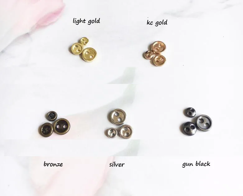 Круглые 2 отверстия диаметром 4 мм Мини металлические кнопки, кукольные аксессуары для одежды, бронзовые, оружейные черные, золотые, серебристые маленькие кнопки S0014L