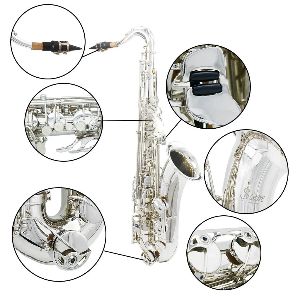LADE Латунь Bb тенор-саксофон с резным узором жемчужно-белый корпус кнопки инструмент ветра с Чехол перчатки, Чистящая салфетка щетка для ремня