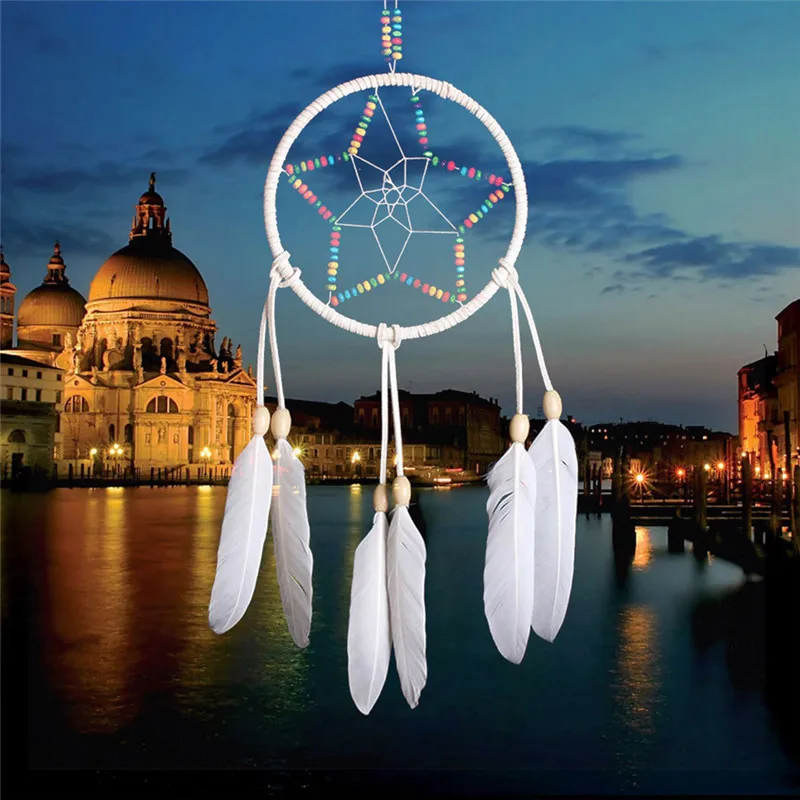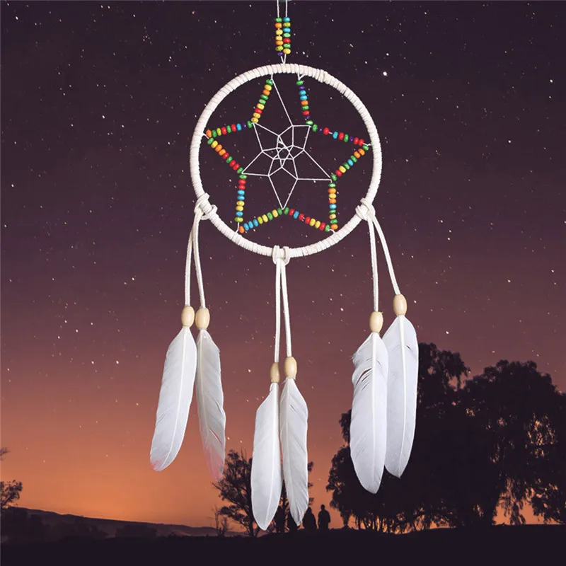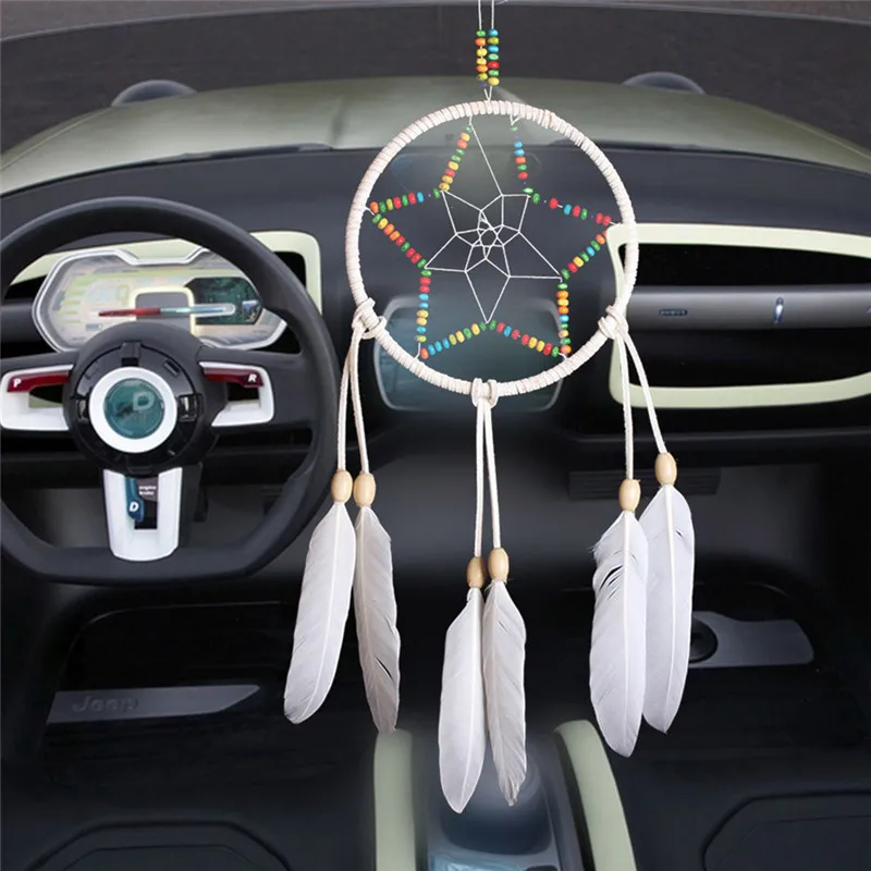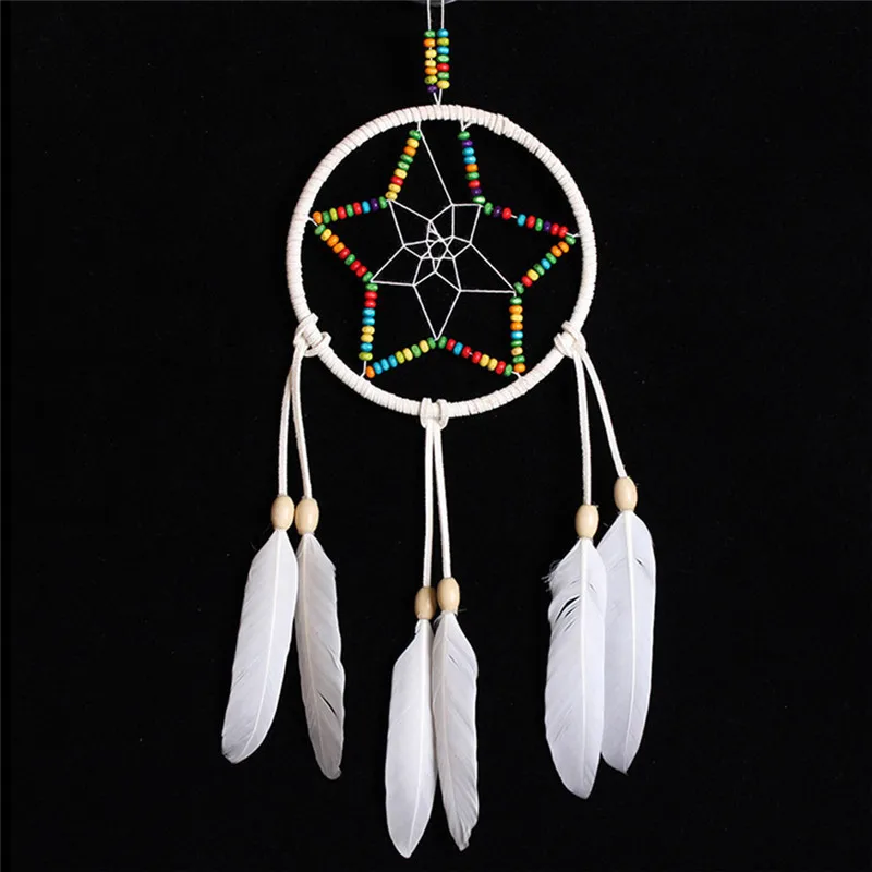 Пятиконечная звезда, винтажная ручная работа, Ловец снов с перьями, настенный снов, украшение для автомобиля, украшение, ремесло, подарки