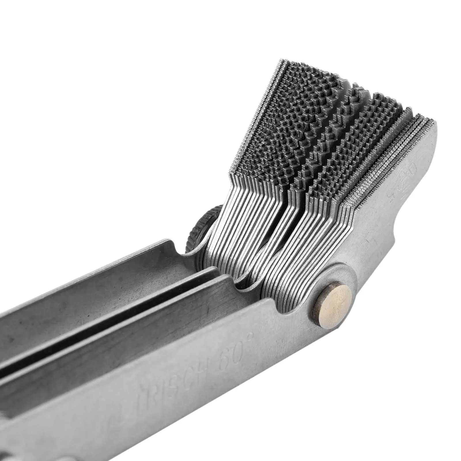 100% новый.С помощью поворотного переключателя можно свободно регулировать.Закалочная обработка, сильная твердость, головка с магнитом.Функция: измерение шага зубьев резьбы и наружной резьбы.Материал: сталь.Цвет: серебристый.Длина в сложенном виде: 66 мм.Толщина сгиба: 22 мм.Общая длина: 110 мм.Общая ширина: 55 мм.Дюйм 55 ° характеристики:Посылка входит