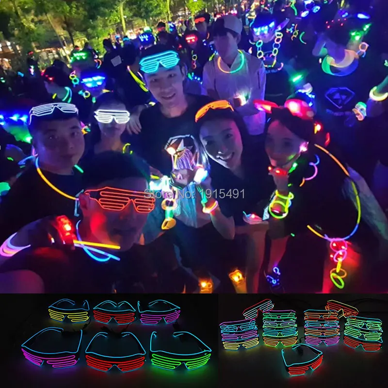 Высококачественный европейский стиль, маскарадный декор, EL Wire, красный + зеленый лайм, солнцезащитные очки, праздничное освещение, светодиодный, очки с DC-3V, конвертер