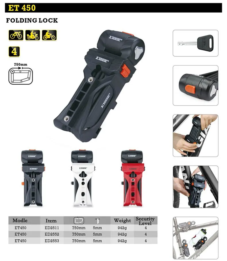 Замок удобен для переноски и устанавливается на велосипед после складывания