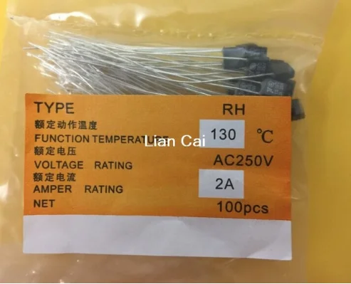 '100pcs/lot New RH 130 Degree Thermal Fuse 2A 250V