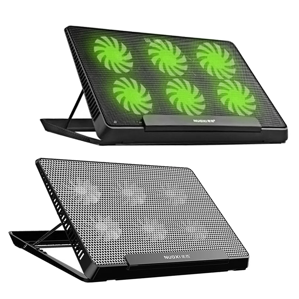 Вентилятор для ноутбука с двумя USB-портами, тихий, регулировка скорости ветра, охлаждающая подставка, зеленый светодиодный кулер с подсветкой и регулируемым кронштейном по высоте