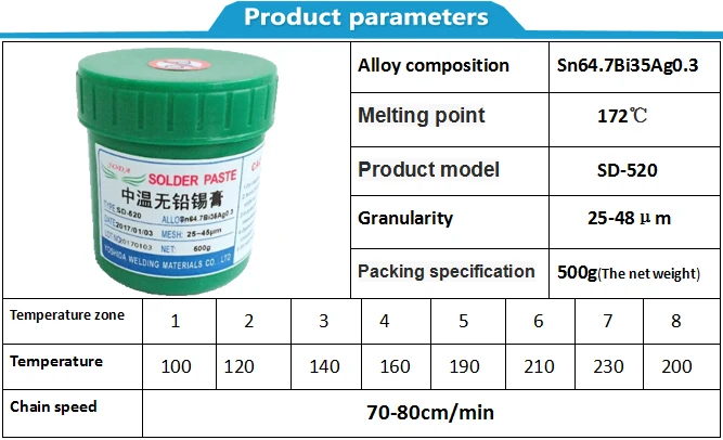 Горячая распродажа! SD-520 Средний 172 C Температура SMT Бессвинцовая SMT паяльная паста 500 г Sn64.7Bi35Ag0.3