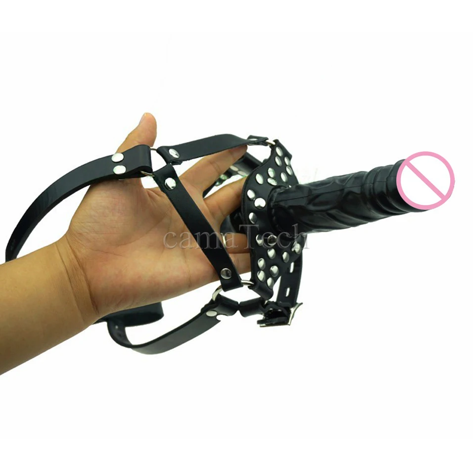 Силиконовый двусторонний фаллоимитатор camaTech, кляп на ремешке с открытым ртом и пряжками, кожаный бондаж для лесбиянок, эротические игрушки