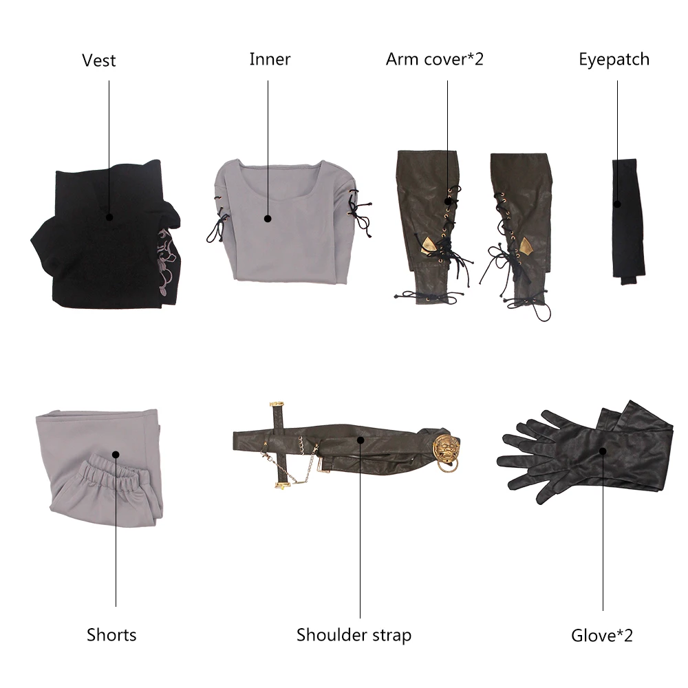 Украшения: Защитный чехол * 2, плечевой ремень, повязка на глаза, перчатка * 2.