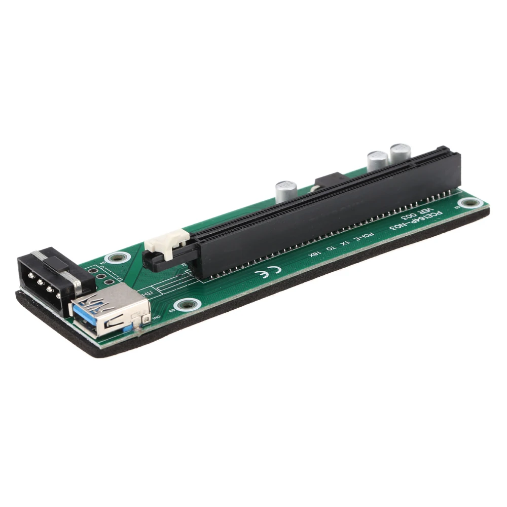 1x к 16x расширитель, с SATA 15pin-4pin кабель питания и USB 3,0 кабель, совместим с 1x, 2x, 4x, 8x, 16x, более безопасный, более эффективный и практичный. Принимает три твердотельных конденсатора FP, делает стабильную графику и безопасный источник питания. Фиксированная Пряжка карты позволяет избежать падения видеокарты. Это также решает проблему хрупкого ожога, затухания сигнала передачи, недостаточной длины линии взвода.