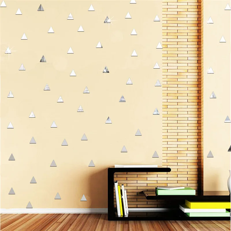 100 шт маленький треугольник акриловый зеркальный эффект Наклейка на стену Бесплатная комбинация зеркальная поверхность наклейки на стену украшение домаПрямая доставка