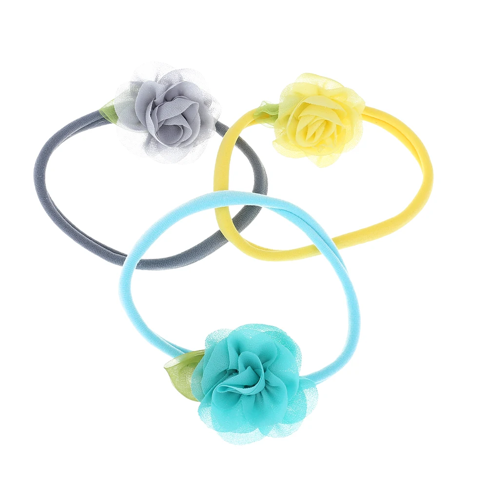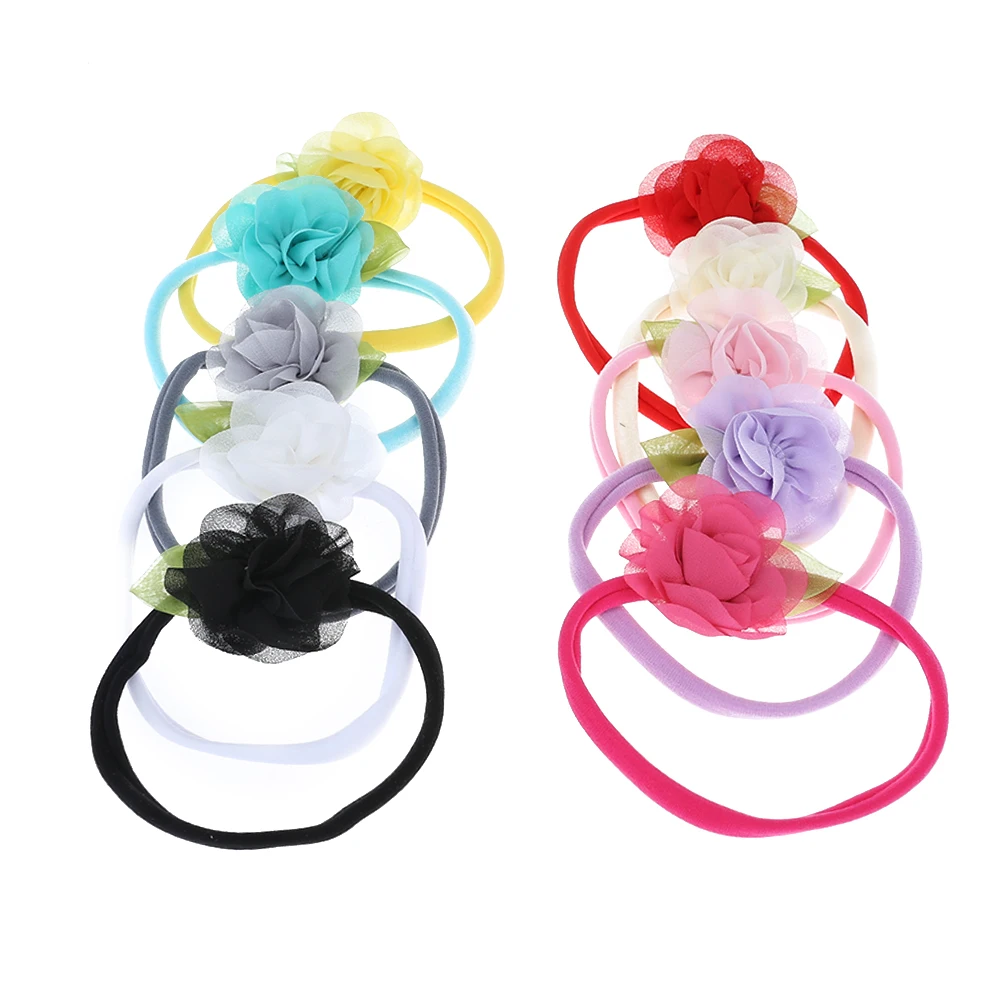 10 шт. эластичные детские повязки на голову для девочек, с цветами и шифоновыми листьями, аксессуары для волос