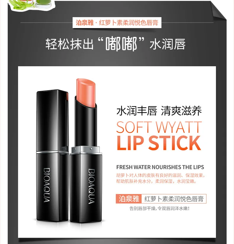 BIOAQUA каротин бальзам для губ увлажняющий пчелиный воск губная помада натуральный увлажняющий бальзам для губ длительное питание губ Макияж инструмент 1 шт.