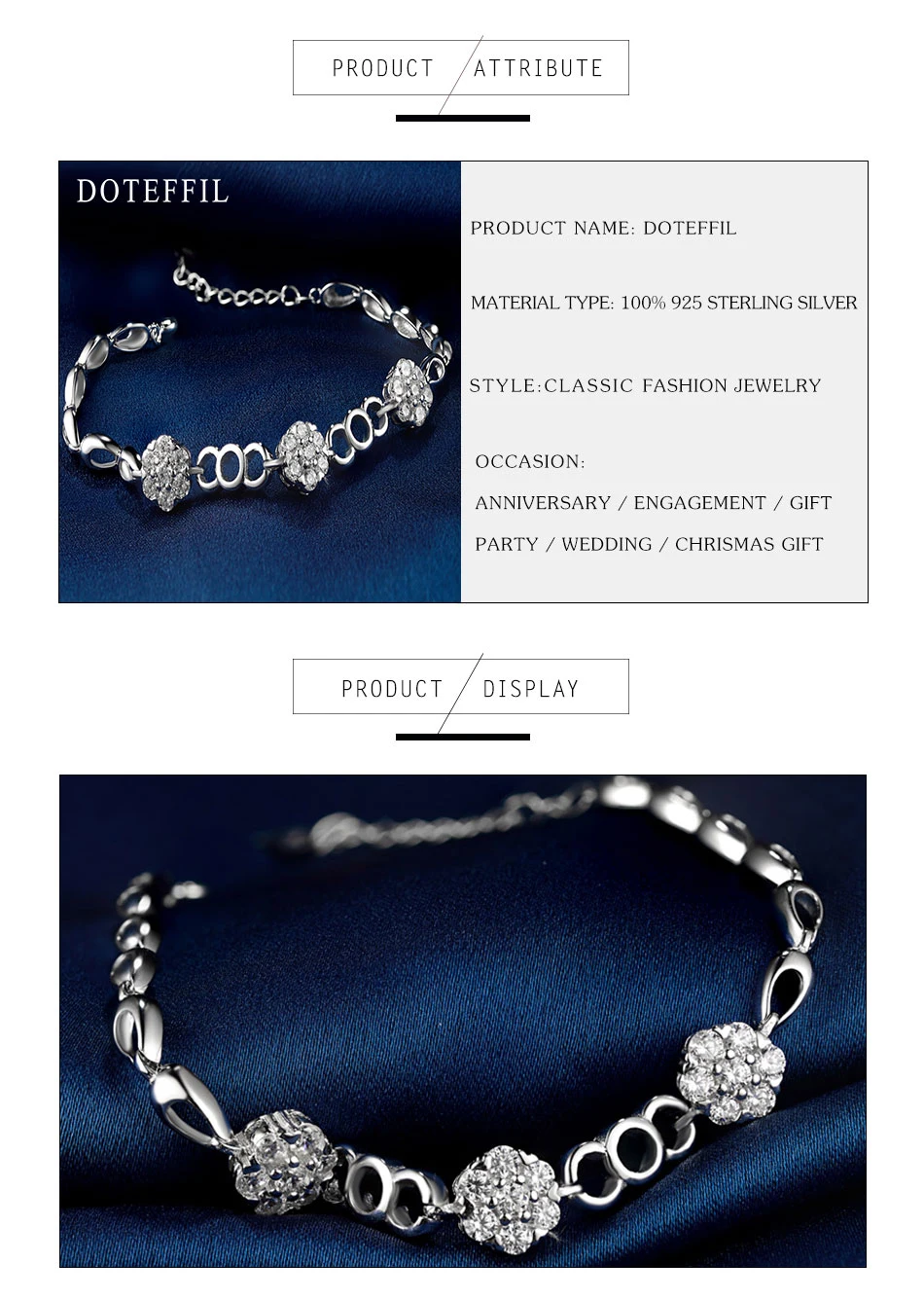 Очаровательный браслет для женщин из стерлингового серебра 925 пробы, браслет с цветком, высокое качество, AAA циркон, роскошные ювелирные изделия 100% Стерлинговое Серебро 100% новый