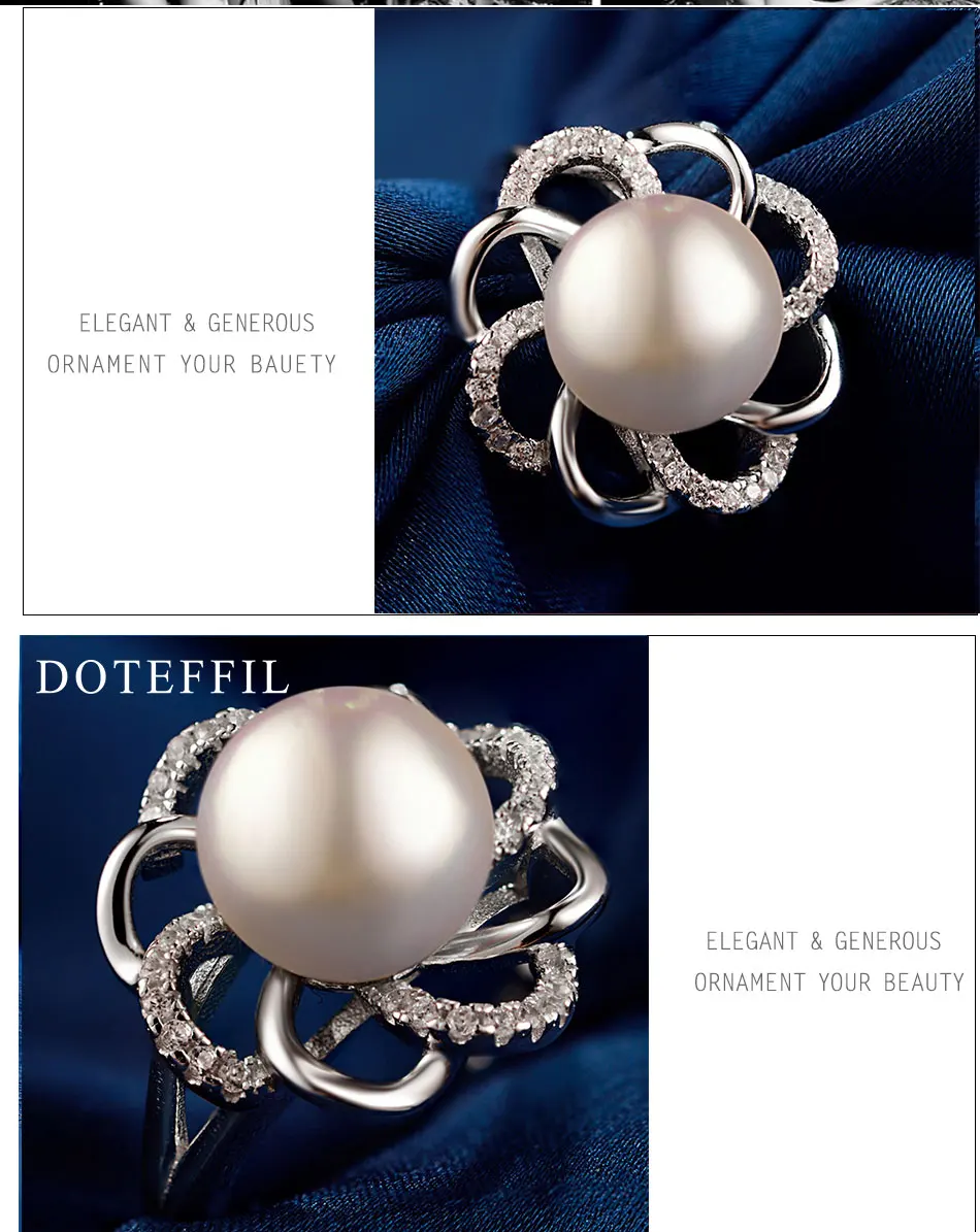 AAA 10 мм жемчужные очаровательные женские кольца с цветами, 100% Стерлинговое Серебро 925 пробы, модные кольца с цветами, высокое качество, Женские Ювелирные изделия из серебра 925 пробы