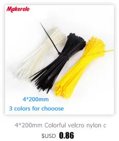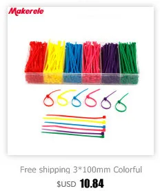 3*100 mm Colorful velcro nylon cable ties cable wire tie Self-Locking plastic tie zip ties 100PCS/Bag and 8 colors for chooseFeature1.Use of environmentally friendly durable nylon 66 original raw material deformation2.Simple mechanism designed to operate stationary slippage, various colors for easy sorting3.Wide range of applications such as supermarkets resident household appliances factorSpecificationType:Self-locking Nylon Cable TieMaterial:Nylon 66Tensile Strength:104kPaWorking Temperature:-35-100 centigradeSize:3*100(Width:2.5mm*Length:100mm)Package Show100*Green / 100*Red / 100*Black / 100*Pink / 100*Blue / 100*Yellow / 100*Purple / 100*White