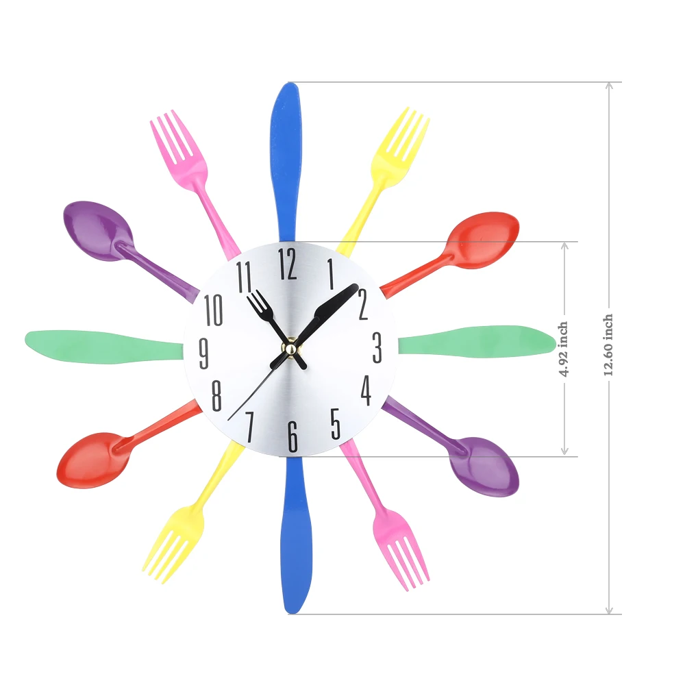 Столовые приборы, металлические цветные настенные часы с вилкой и ложкой, кухонные часы, креативный Современный домашний декор, настенные часы в античном стиле
