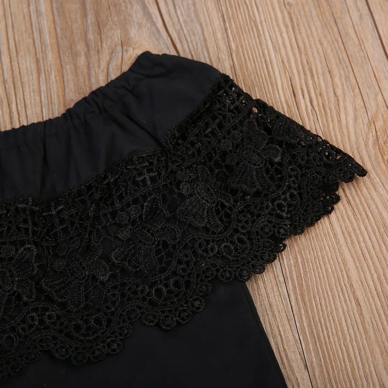 Комплект из 2 предметов для девочек: кружевной топ с открытыми плечами + рваные джинсовые шорты!