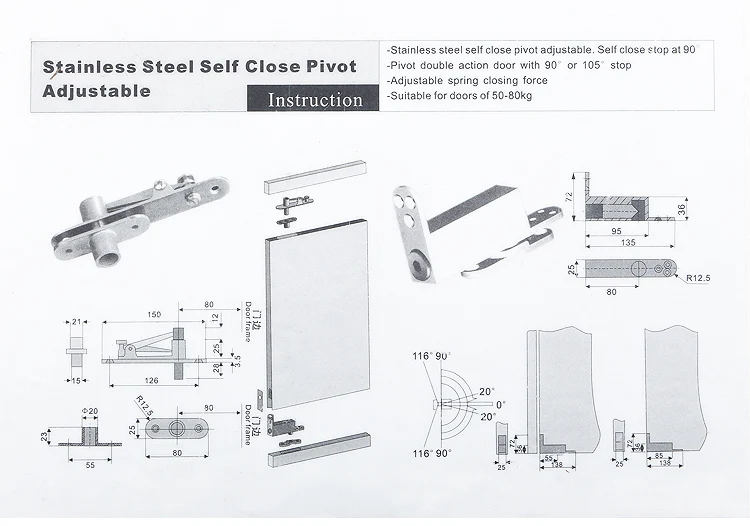 Материал: нержавеющая сталь 304, алюминиевый сплавПодшипник нагрузки: 25- 50 кгТолщина двери: 32-50 ммШирина двери: 900 ммВысота двери: 1500-2200 ммАвтоматическая Закрытая дверь, с буферомУстановлен наДеревянные двери, алюминиевая рама двери, тяжелые двериСъемная дверьВы не можете видеть любое оборудование, когда дверь закрытаПолностью скрыт.Посылка: 1 комплектДисплей---------------------Руководство для покупок