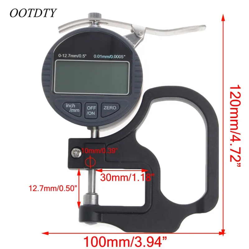 0-12,7 мм Электронный микрометр цифровой Толщина измеритель 0,01 мм Глубина тестер для Бумага пленка кожа Толщина измерительный инструмент