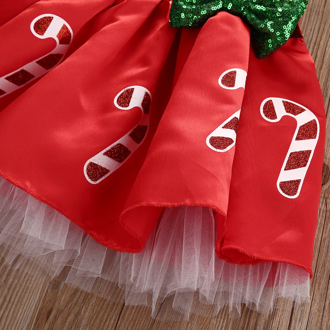 Pudcoco/рождественское платье для маленьких девочек от 0 до 18 месяцев платье-пачка в полоску с бантом и карамельным тростником праздничные платья bebe/костюм для девочек, сарафан!