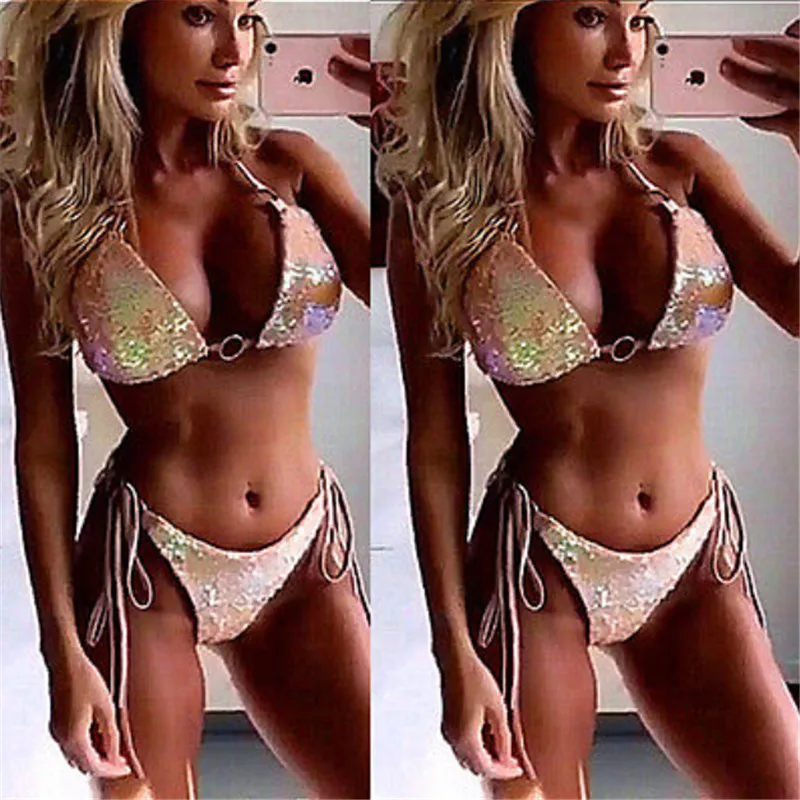 Бикини 2017, сексуальные женские комплекты бикини с блестками, купальник, бандаж, пуш-ап, Холтер, низкая талия, купальник, пляжная одежда, maillot de bain