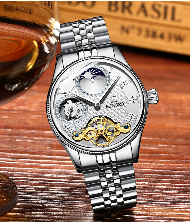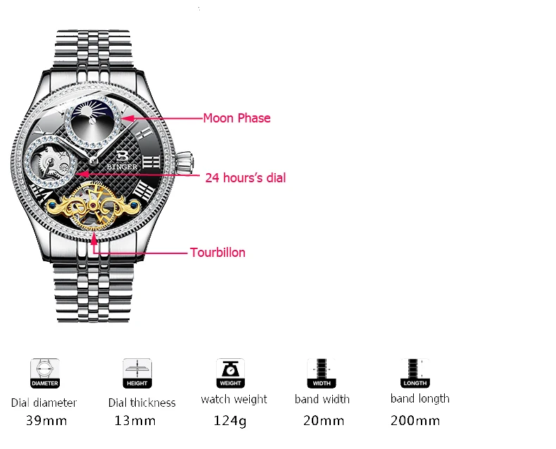 Металл Состав:316L нержавеющая сталь Чехол Размеры: 39 мм диаметр Тип ремешка: нержавеющая сталь 316L Посылка: Накрыть пузырчатой пленкой и упаковать в деревянную коробку бингера. Вместе с английской инструкцией. Внешняя коробка также покрыта пузырчатой пленкой. Мы обещаем, что часы не будут повреждены при транспортировке 12 месяцев гарантии