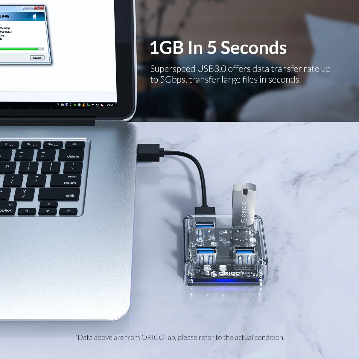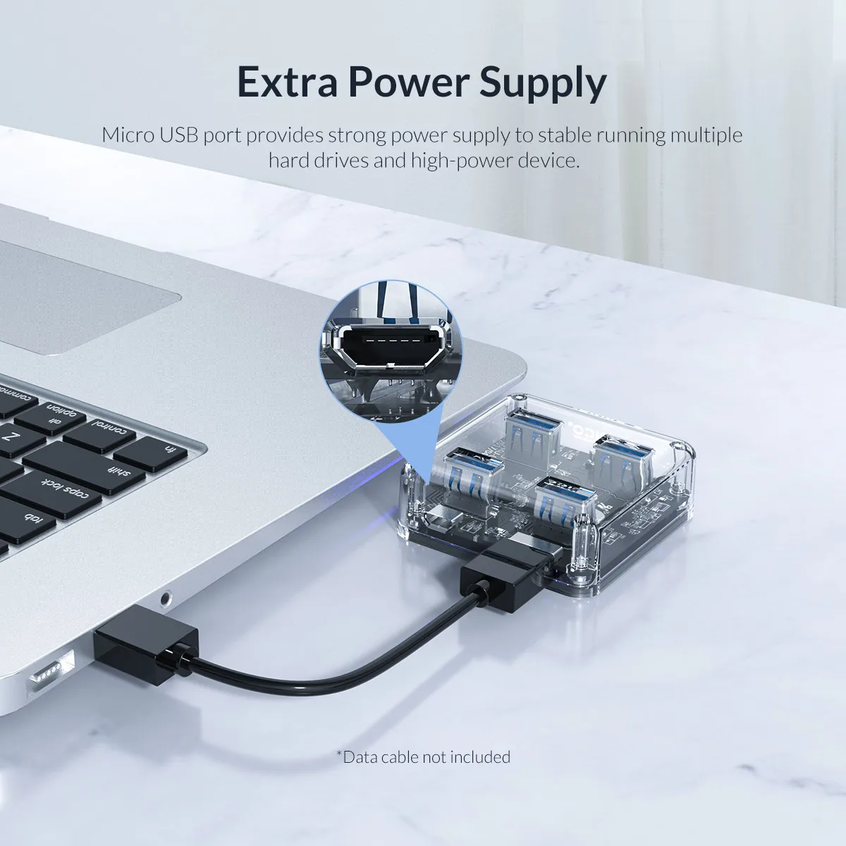 Прозрачный Концентратор ORICO с 4 портами USB 3,0, 1 шт. 1 х 30 см/100 см микро USB кабель 1 x Руководство пользователя 1 x сервисная карта