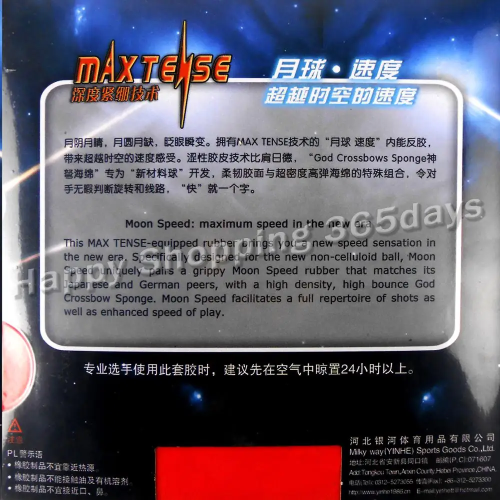 Yinhe Moon SPEED Max Tense нет заводских настроенных пипсов в настольном теннисе PingPong Rubber с губкой