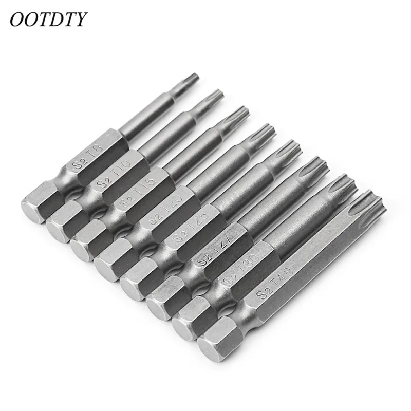OOTDTY 8 шт./компл. 1/4 дюйма 50 мм T8-T40 Магнитный Torx электрический набор отверток